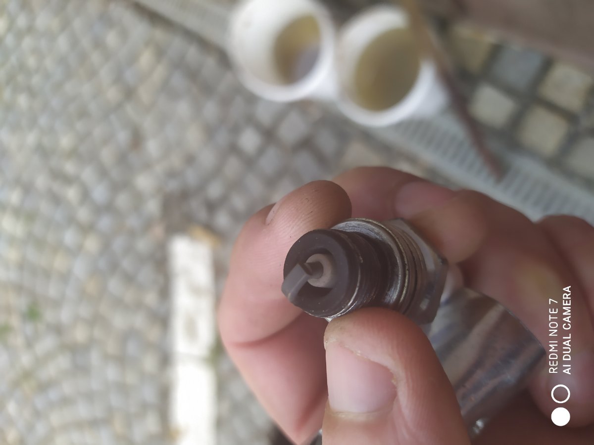 ahoj svicka je asi sucha nejaka kapka tam je cira mozna olej, proste smrdi po benzinu, pokud byla zima teplota cca 10 stupnu startovalo to ze sytičem bez nej bych to mozna nastartoval ale trvalo by to dele, teploty cca nad 15 stupnu na fleku jak zahraty motor 5-10m? Karburator několikrát cisten ...