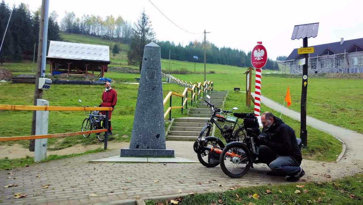 .........Tak to máme za sebou návštěva vyhořelého kostela v Gutech u Třince ....návštěva nejvýchodnějšího mista na Moravě....a nakonec TROJMEZÍ hranice SLOVENSKA , POLSKA a České republiky najeto 130km ...pěkný výlet TOMÁŠ , ZDENĚK a PETR