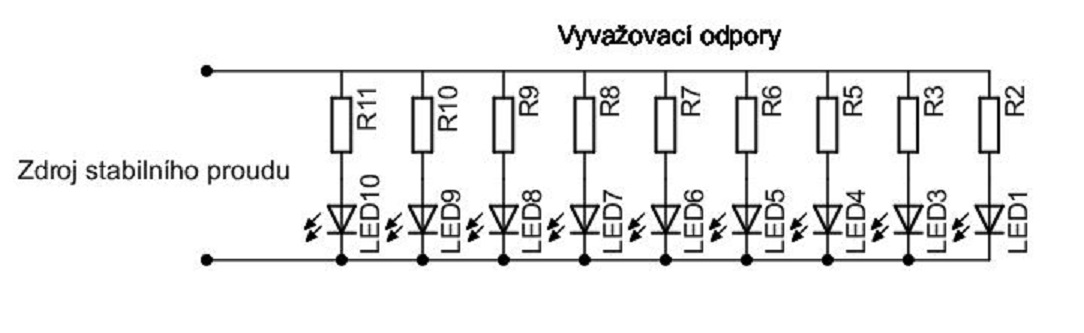 Takhle se řadí led diody v lampě pro zdroj konstantního