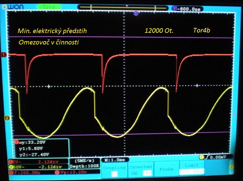 Na prvním obrázku je průběh napětí na magnetu.Žlutá křivka