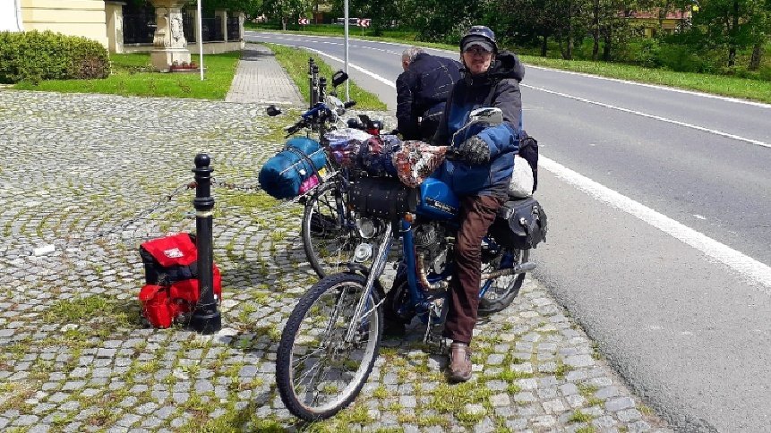 pozdrav z výletu po Jeseníkách a Orlických hor .....najeto 640 km průměrná rychlost 30,5 km/h. bez jediné opravy na motoru jen výměna pláště na vozíků .......foto na http://www.moto-kola.estranky.cz/