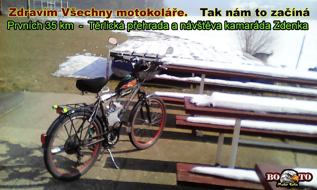 Tak nám to začíná ,,,,pozdrav z výletu na jarmark do Vojkovic a okolí ....krásných asi 50km ujeto a vše v pohodě příprava na delší cesty proběhla na 100% už to může vypuknout teď už jen to počasí ,,BO-TO a Zdenek z Havířova