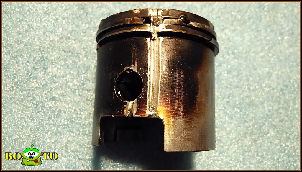 Pístní čep je z dostatečně kvalitního materiálu na to, než aby to co se stalo viz. fotografie výše, se nezačalo projevovat nejprve alarmujícím drnčením v motoru před vlastní katastrofou.